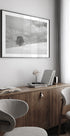A clean, monochrome winter motif by Hans Peter Rank: A lonely tree silhouette stands on a snow-covered slope, while distant mountain peaks disappear in the mist of the clouds. The soft gray tones and the open negative space create calm, melancholy and timelessness – a poetic break in the landscape. The contrast between the white snow and the heavy sky highlights the strength of the tree.