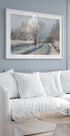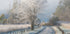 This peaceful winter landscape captures a frosty morning along a quiet country road, with a snow-covered tree glowing in soft pastel light. The muted tones and calm atmosphere evoke stillness, freshness and the quiet beauty of the morning, creating a soothing artwork for seasonal and nature-inspired walls.