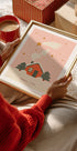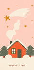 A cozy winter atmosphere spreads across a snow-covered landscape, where a small cabin glows warmly in the darkness and the stars twinkle above the treetops. The poster captures the magic of Christmas with gentle snowflakes, tracks in the snow, and a touch of fairy-tale charm that evokes nostalgia and invites calm and togetherness. Perfect for bringing Christmas warmth into the home.