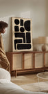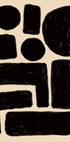 A modern abstract artwork with striking black shapes scattered over a warm beige background. The textured brush strokes and organic shapes create a sense of balance and simplicity — ideal for Scandinavian, Japandi or modern interiors.