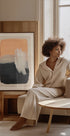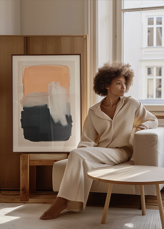 A modern abstract poster with bold brushstrokes in warm peach, layered grey, deep black and a touch of soft white. The textured strokes and contrasting tones create a striking composition that balances warmth and depth – perfect for minimalist interiors, Scandinavian decor or stylish gallery walls.