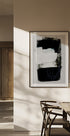 A striking monochrome abstract poster with sweeping black and white brush strokes, layered with subtle line detail. The strong contrasts and textured surfaces create a minimalist yet powerful composition—perfect for modern interiors, Scandinavian design or contemporary gallery walls.
