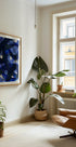 A dramatic abstract poster with deep indigo and navy brush strokes layered over soft white details. The sweeping, painterly strokes create a distinctive yet fluid composition that expresses both energy and depth—perfect for Scandinavian interiors, modern minimalist spaces, or contemporary gallery walls.