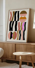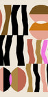 This abstract geometric artwork features bold shapes and earthy tones contrasted with pink and black on a pure white background. Inspired by Bauhaus aesthetics, the composition combines balance, rhythm and modern minimalism, creating a striking piece that elevates any modern interior.