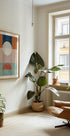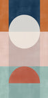 This abstract geometric poster features a modern composition of circles and rectangles in earth tones such as terracotta, navy blue, blush and sage green. With a minimalist mid-century aesthetic, it combines balance and warmth, becoming a stylish piece of wall art for modern interiors.