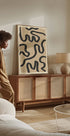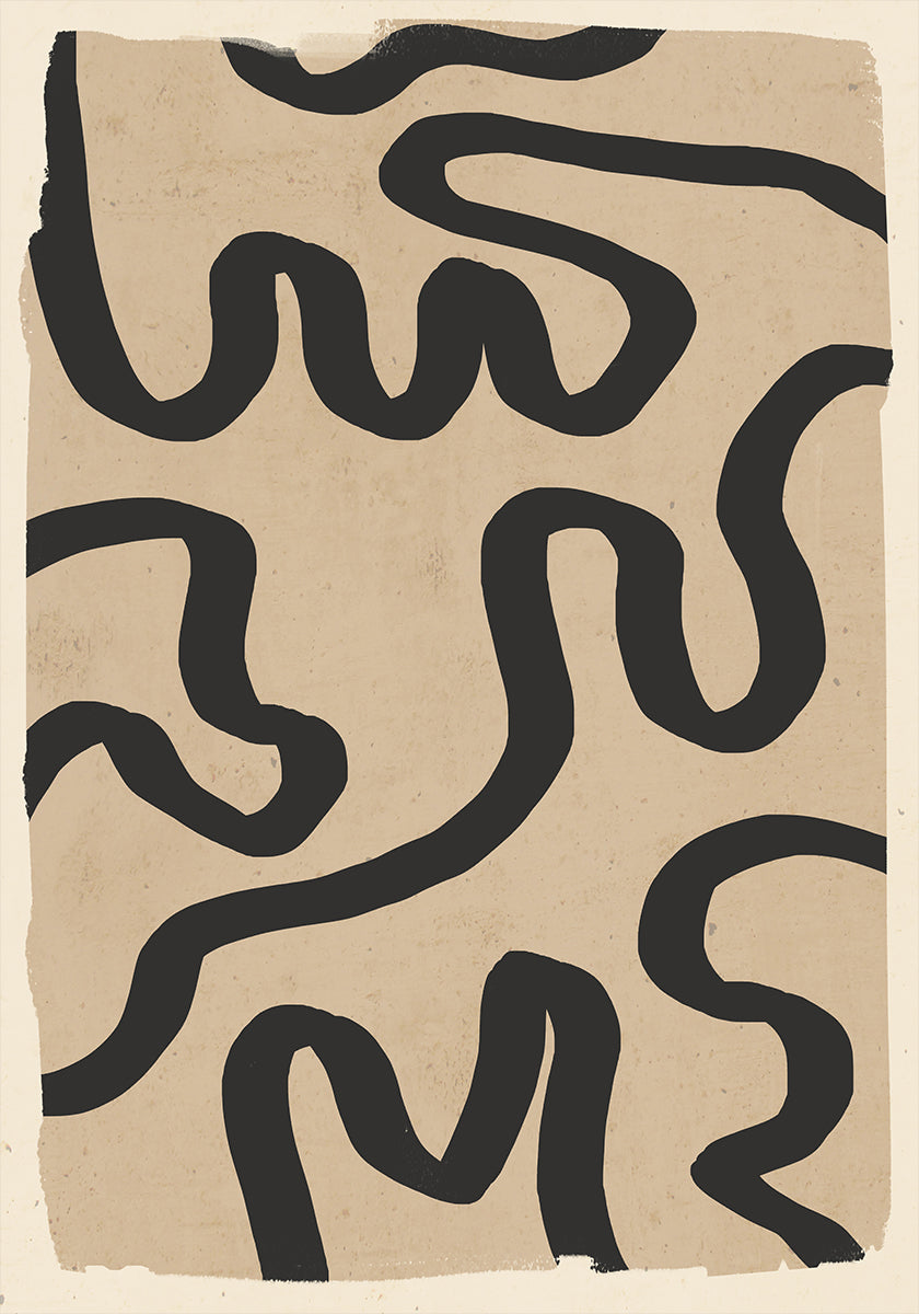 A striking abstract line art poster with bold black strokes snaking across a beige textured background. The modern and minimalist expression combines simplicity with movement, ideal for contemporary, boho or Scandinavian interiors.