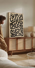 A modern abstract artwork with distinctive black labyrinth-like strokes on a warm beige background. The free lines create a sense of rhythm and movement, making it an eye-catching statement piece for contemporary spaces and minimalist interiors.