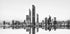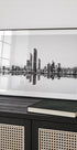 An eye-catching black and white city poster of Abu Dhabi, capturing the modern skyline mirrored perfectly in the calm water. With elegant towers, city lights and a mirrored composition, the artwork highlights the architectural elegance and vibrant spirit of the UAE's capital.