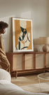 An eye-catching minimalistic poster depicting an elegant African woman with bold jewelery and a patterned headscarf. The earthy yellow and black tones blend modern abstraction with cultural richness, making it a strong element in modern and boho-inspired interiors.