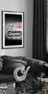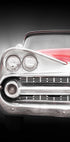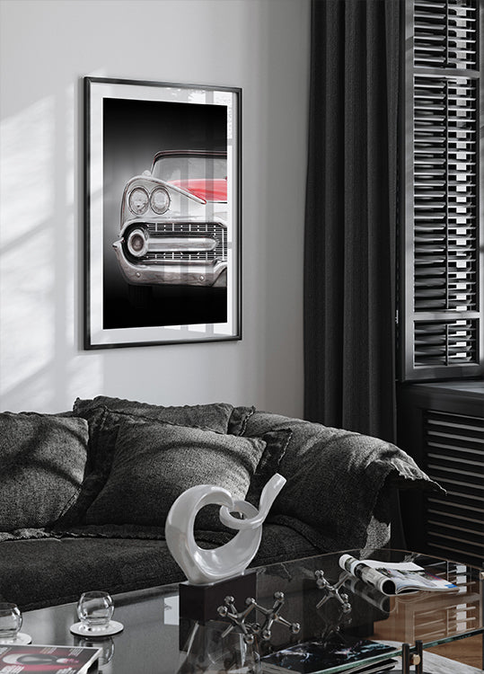 A striking front view of the 1959 Dodge Coronet, an icon in American automotive history. The artwork highlights the car's shiny chrome details, twin headlights and bold red hood, which symbolizes the golden age of American classic cars. A perfect nostalgic piece for car lovers and vintage enthusiasts.