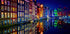 A brilliant night view of Amsterdam's iconic canal houses, where colorful facades glow in the light and are perfectly reflected in the still water. This lively cityscape celebrates Dutch architecture, urban charm and the magical reflections that make Amsterdam unforgettable after dark.