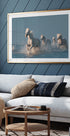A powerful photograph of the wild white horses of the Camargue, captured as they gallop through the waves. Water droplets glisten in the air, highlighting their strength, movement and wild spirit. This breathtaking scene expresses freedom, energy and the timeless beauty of nature.