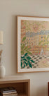 A charming illustration of a cozy Parisian bookstore with bookshelves, plants and a cat resting peacefully. The view of classic Parisian rooftops outside the window adds a warm atmosphere that combines literature, slow living and European charm. Perfect wall art for book lovers, cat enthusiasts and Paris admirers.
