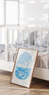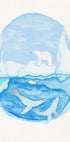 A calm, icy blue scene unfolds: a polar bear glides through the frozen sea, while curious seals rest on drifting ice floes. Fine watercolor textures and soft shades create depth and stylish calm. A poetic nature tale by artist Anjana Mistry that captures the quiet power of the Arctic. Colors in cold blue and white tones give the subject pure calm.