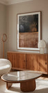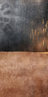 A modern abstract artwork with earthy tones in brown, orange and grey, combined with a rustic textured surface. Golden vertical strokes add depth and contrast, creating a timeless expression. Perfect for minimalist, rustic or modern interiors that want warmth and sophistication.