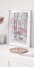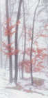 A quiet forest landscape, where the last red autumn leaves shine against a thin layer of fresh snow. Dark trunks disappear in the mist and create depth and calm, while the cold settles like a veil over the forest floor. Autumnal snow by Ales Krivec captures the border between autumn and winter with poetic simplicity. A calm, misty day in the deep silence of the forest.