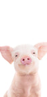 A heartwarming portrait of a piglet captured against a pure white background. The pink muzzle, the gentle eyes and the playful expression give a feeling of innocence and charm. Perfect for farm decor, children's rooms or for anyone who loves cute animal portraits.
