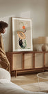 A modern abstract illustration of tropical fruits such as papaya, fig and citrus, balanced elegantly over a stylized hand. With earthy tones and striking contours, the artwork celebrates freshness, nature and the lively beauty of everyday life. A perfect piece for kitchens and modern interiors.