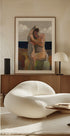 A modern interpretation of a seated bather by the beach: a female figure made up of geometric surfaces and expressive brush strokes. The work of Tore Bahnson unites cubist forms with emotional calm and a timeless, sun-drenched atmosphere. Perfect as an eye-catcher in both modern homes, galleries and artistic environments.