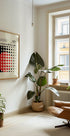 A striking Bauhaus Ausstellung poster from 1923, featuring bold red and black geometric circles arranged in a rhythmic pattern. This vintage design reflects the Bauhaus movement's focus on form, color and function. A perfect combination of art and history, ideal for retro and modern interiors.