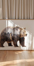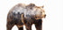 A striking double exposure artwork of a brown bear, seamlessly combined with a silhouette of a dense forest. The bright snowy background highlights the wild and majestic presence of the bear, which symbolizes strength, nature and wilderness.