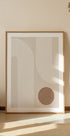 A modern, minimalist art print with soft beige tones, clean white arcs and a geometric circle. The simple design, inspired by mid-century modern, gives balance and elegance to any wall and is perfect for neutral interiors and bohemian-inspired spaces.