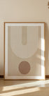 A stylish, minimalist poster with clean white arches combined with a solid brown circle on soft beige tones. The geometric composition reflects mid-century modern design and adds warmth, simplicity and elegance to any interior.