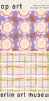 A bold and colorful Pop Art poster inspired by the Berlin Kunstmuseum exhibition from 1950-1960. With vibrant floral shapes and geometric grid patterns, the design reflects the power of American pop culture in repetition. Perfect for both retro and modern interiors.