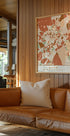 Black Maps Earth Tones 44 captures Madrid's urban pulse in a graphic map work by Emiliano Deificus. Black lines and earth-colored surfaces reveal the city's street network, neighborhoods and rhythm in a clean, modern expression. A sophisticated tribute to the big city that creates calm depth and visual balance on the wall. Perfect as a focal point in the living room or in the office.