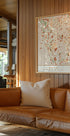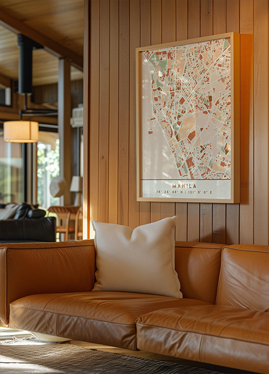 Black Maps Earth Tones 46 by Emiliano Deificus transforms the vibrant texture of the city into a sophisticated, graphic composition. In deep black surfaces and earthy hues, streets and neighborhoods draw like an elegant grid, where latitude and longitude suggest direction and rhythm—a calm tribute to Manila. The soul of the city in minimalist form.