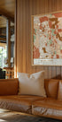 Black Maps Earth Tones 47 by Emiliano Deificus unfolds an evocative, graphic city map vision in warm earth tones. Organic textures meet sharp street grids and suggested coordinates, evoking images of Marrakesh's labyrinths and the rhythm of North Africa. A sophisticated, calm focal point for modern spaces!