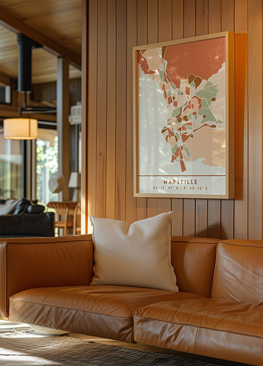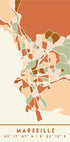 Black Maps Earth Tones 48 by Emiliano Deificus is a stylized city map of Marseille in warm earth tones on deep black. The clean lines and graphic calm capture the city's pulse and coastal geometry without noise, and provide a sophisticated, timeless expression that elevates everything from the living room to the office. Perfect for Nordic minimalism.