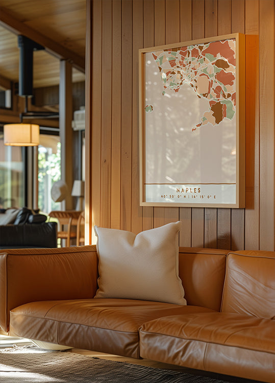 Black Maps Earth Tones 58 by Emiliano Deificus captures Naples as a poetic, dark map, where warm earth tones draw the street network, the neighborhoods and the meandering coast. The subtle contrasts emphasize the rhythm of the city and provide a refined, graphic expression that brings calm, depth and character to the wall. Creates a quiet focus.