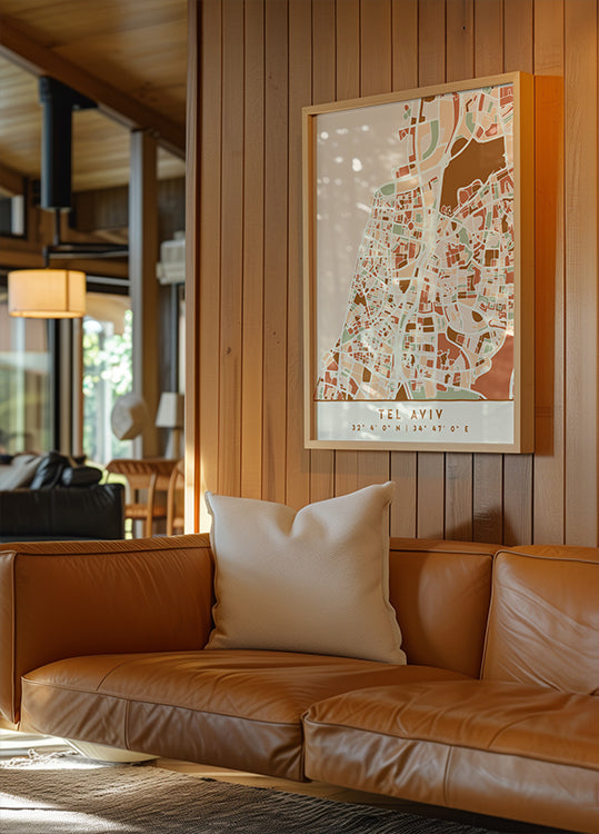 An atmospheric city map of Tel Aviv in earthy shades, where black lines draw the coast, neighborhoods and streets with graphic precision. Emiliano Deificus unites cartography and art in an elegant composition that captures the city's rhythm, contrasts and the presence of the Mediterranean - timeless, urban and refined. Perfect for modern rooms.