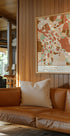 Emiliano Deificus reimagines Vienna with a striking black map washed in earthy tones. The city's street grid, districts, and the sweep of the Danube emerge as bold, minimalist geometry, turning urban texture into art. A contemporary statement piece for lovers of maps, cities, and refined design. From the artist's Black Maps series.