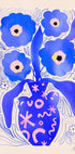 A bold and playful tribute to Matisse, with a lively vase filled with striking blue flowers on a light background. The design combines graphic patterns with floral elements and creates a lively and modern still life, ideal for contemporary interiors.