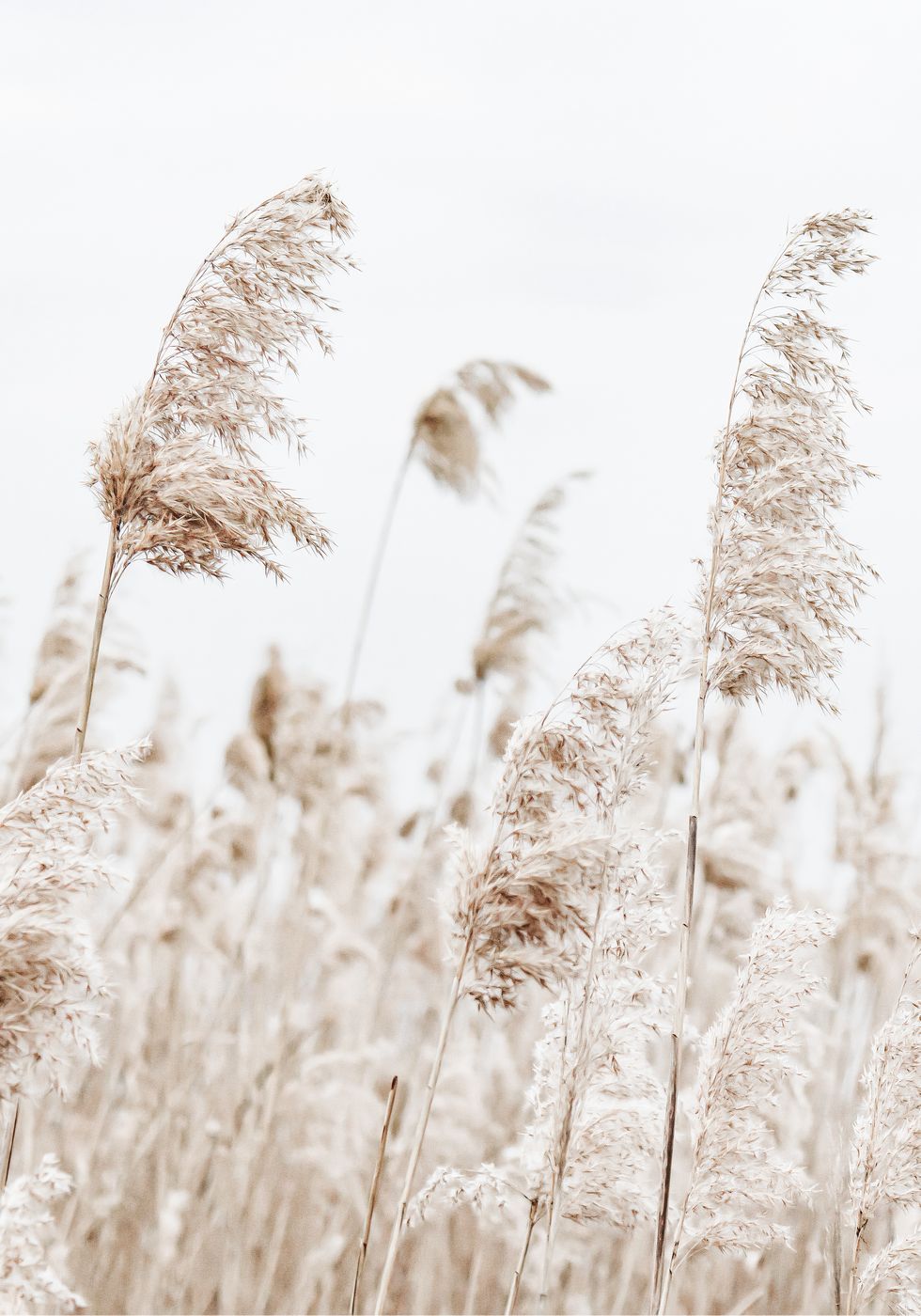 A soothing and minimalist photograph of dried reeds swaying in the wind. The soft beige and neutral colors create a warm and organic atmosphere, perfect for bohemian, Scandinavian or nature-inspired decor. A calm poster that brings the beauty of nature into any room.