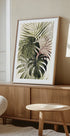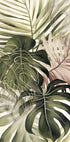 A stylish botanical composition with lush tropical leaves in soft green shades with touches of pink and golden details. The design combines exotic palm leaves and monstera for a modern boho-inspired look, perfect for adding freshness and elegance to any decor.