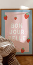 Add French charm to your home with this legend Bon Jour Belle-poster. Surrounded by red strawberries in soft pastel colors, it combines sweetness and style. Perfect for kitchens, cafes or as cheerful wall art, providing a fresh splash of color and an everyday compliment to your space.