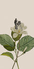 A surreal collage poster showing a vintage cameraman filming on top of a white flower. This unique piece of art combines retro nostalgia with botanical elegance, creating a playful and artistic expression, perfect for eclectic, vintage and modern interiors.