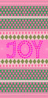 Bright Joy by Aliya Putrus radiates festive spirit: the word JOY is composed in geometric shapes and stitch-like patterns reminiscent of embroidery and patchwork. Fresh pinks and greens, flashes of sequins and quilt-inspired fields create a lively, wintry tribute to joy and colorful optimism.