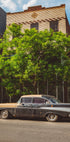 A nostalgic poster of a classic vintage car parked in Williamsburg, Brooklyn, New York. The scene captures the charm of an old Chevrolet Bel Air against an urban backdrop of brick buildings, green trees and street texture. Perfect wall art for car enthusiasts, city lovers and fans of retro Americana.