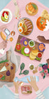 A lively illustration that captures the joy of brunch with friends around a colorful table. From ramen and tacos to croissants and fresh fruit, this artwork celebrates global cuisine and community, highlighting food as both nourishment and a shared experience of love and friendship.