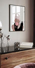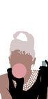 A playful, modern interpretation of a classic icon, this illustration shows a glamorous woman in pearls and gloves blowing gum. The minimalist style and strong contrasts combine vintage elegance with cheeky pop art, perfect for fashion lovers and modern decor.