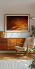 A flaming abstract work of art that mixes shades of red, orange and gold, evoking both the flow of water and the intensity of fire. With painterly swirls and soft textures, the piece radiates warmth, passion and energy—perfect for bold interiors or as a dramatic centerpiece.