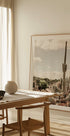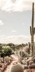 A serene desert-inspired landscape of tall cacti and lush succulents under a soft, cloudy sky. This botanical photograph captures the tranquil beauty of a cactus farm, with natural textures, earth tones and a timeless calm. A perfect print for nature and plant lovers.