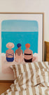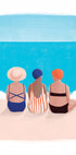 A bright and happy illustration of three women sitting together by the sea enjoying the sun and the view. A perfect piece of art to bring a sense of holiday, relaxation and summer vibes from the coast into your home.