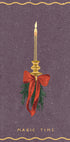 An evocative illustration of a lit candle decorated with an elegant bow and green fir branches. The warm flame casts a soft glow and highlights the deep green tones, while the classic vintage-inspired style captures the calm, coziness and festive anticipation of Christmas. Perfectly captured in a calm composition with fine details in spruce and shadows.