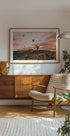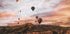 A breathtaking landscape of Cappadocia at dusk with hot air balloons soaring across the sky. The warm desert colors and dramatic clouds give a sense of freedom and adventure, perfect for travel-inspired wall art.