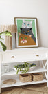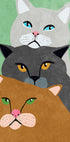 A bold and modern illustration of three stylized cats stacked together in a playful portrait. With expressive whiskers, vivid eyes and a colorful graphic design, this piece of art is perfect for cat lovers and adds a quirky, modern vibe to any room.